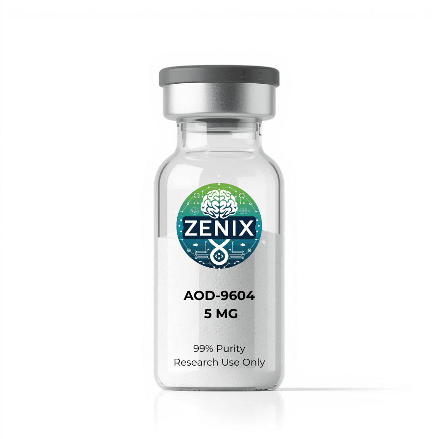 AOD-9604 is a modified fragment of human growth hormone (HGH amino acids 176-191) with enhanced fat-reducing properties. Unlike full HGH, AOD-9604 specifically promotes lipolysis (fat breakdown) and inhibits lipogenesis (fat formation) without affecting blood sugar or growth. This selective action makes it valuable for studying fat metabolism independently from other GH effects.