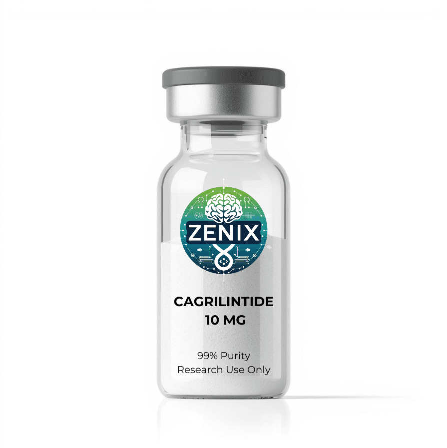 Cagrilintide is a long-acting acylated amylin analog that mimics the effects of the hormone amylin. It works by activating amylin receptors to slow gastric emptying, reduce food intake, and improve glucose regulation. Cagrilintide has a significantly extended half-life compared to native amylin, making it valuable for sustained appetite regulation research. It’s often studied in combination with GLP-1 agonists.