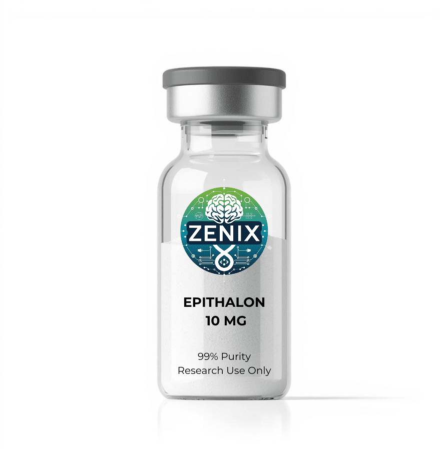 Epithalon (Epitalon) is a synthetic tetrapeptide derived from epithalamin, a pineal gland extract. It has been extensively studied for its potential to activate telomerase, the enzyme responsible for maintaining telomere length. Research suggests Epithalon may influence circadian rhythm regulation, melatonin production, and cellular aging processes. It’s one of the most popular peptides in longevity and anti-aging research.