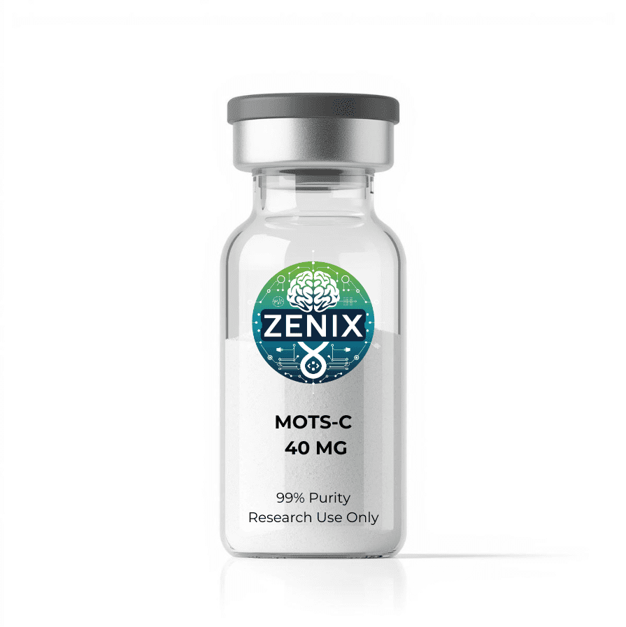 MOTS-c (Mitochondrial ORF of the 12S rRNA-c) is a 16-amino acid mitochondrial-derived peptide that regulates metabolic functions. Encoded by mitochondrial DNA, MOTS-c acts as a metabolic regulator that improves insulin sensitivity, enhances exercise capacity, and promotes metabolic homeostasis. It’s particularly valuable in research on age-related metabolic decline, exercise adaptation, and metabolic syndrome.