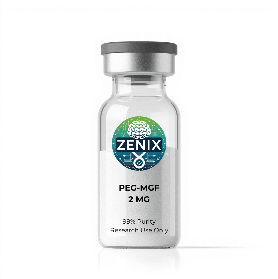 PEG-MGF (Pegylated Mechano Growth Factor) is a chemically modified version of MGF where polyethylene glycol (PEG) molecules are attached to the peptide structure. This pegylation process dramatically extends the peptide’s half-life from minutes to several hours, allowing for sustained biological activity and less frequent dosing. The extended circulation time enables PEG-MGF to exert systemic effects on multiple muscle groups simultaneously, unlike natural MGF which acts primarily at local injection sites. This makes PEG-MGF particularly valuable for research into whole-body muscle recovery, satellite cell proliferation across multiple tissues, and sustained anabolic signaling pathways.